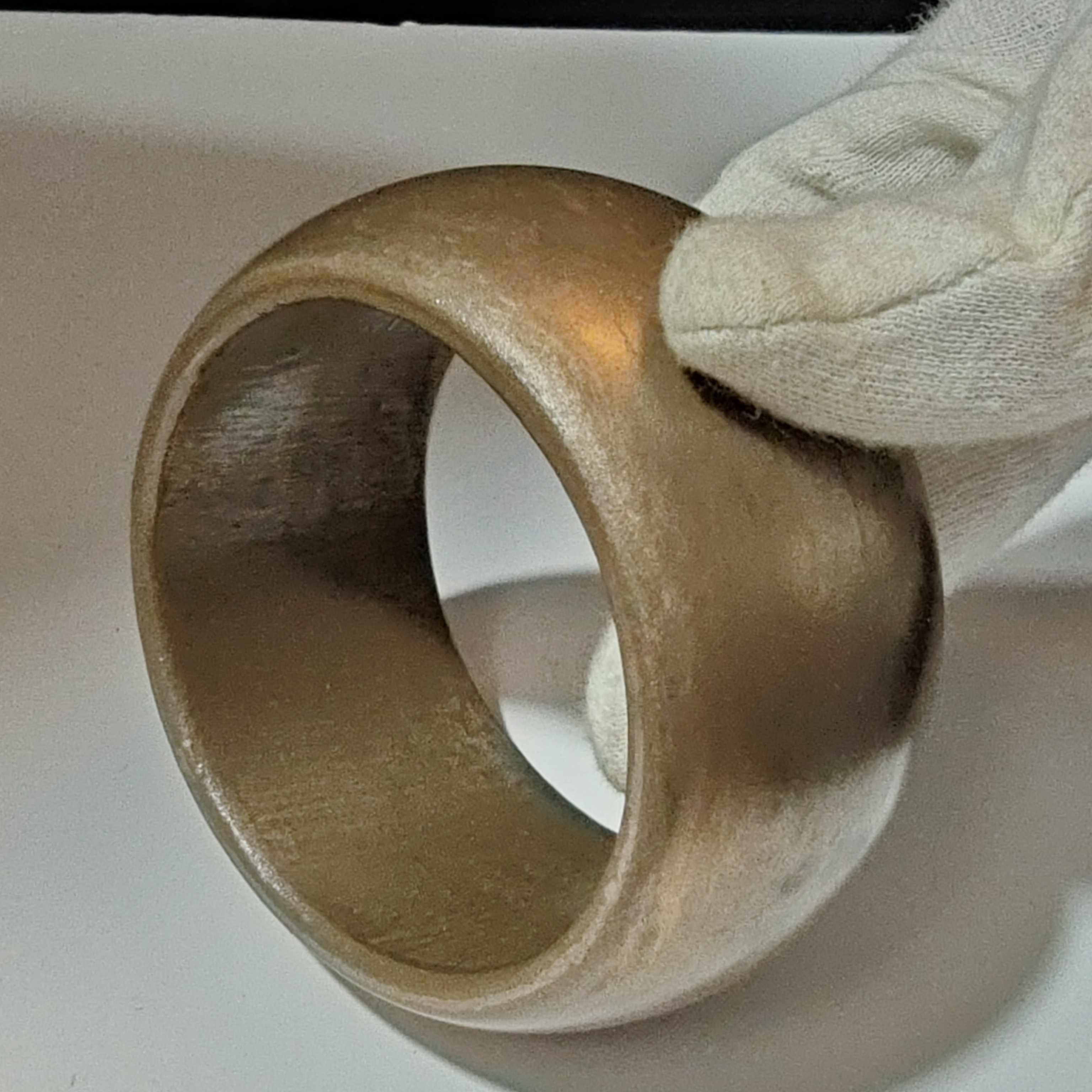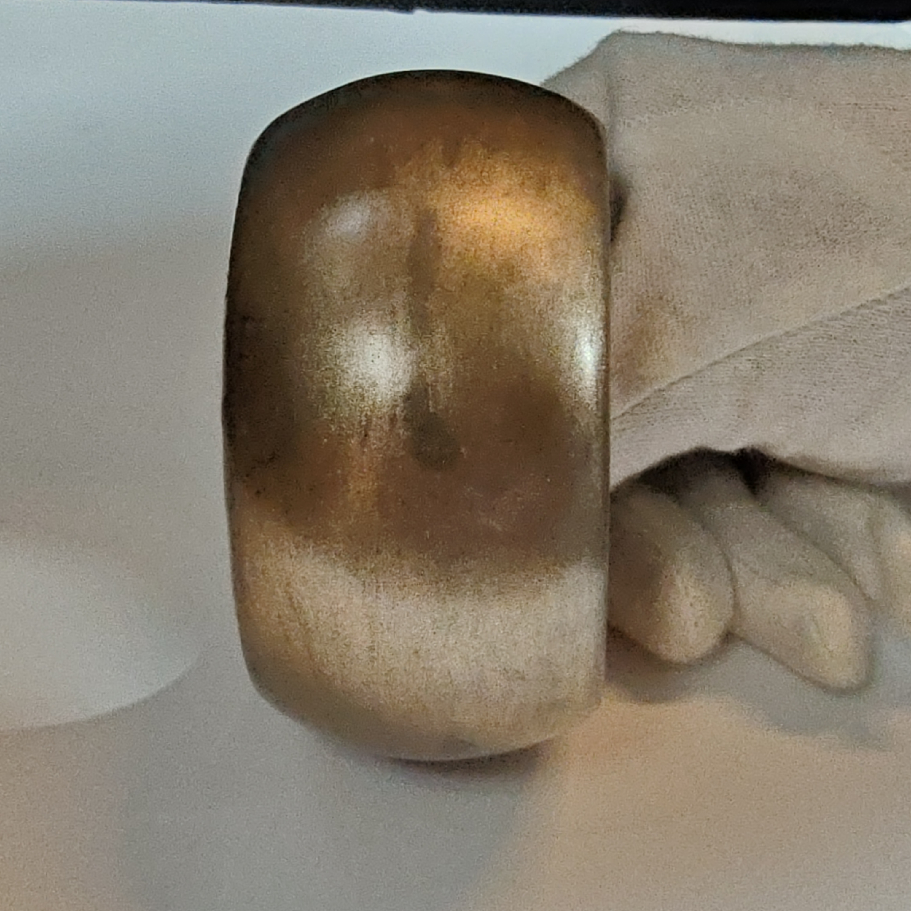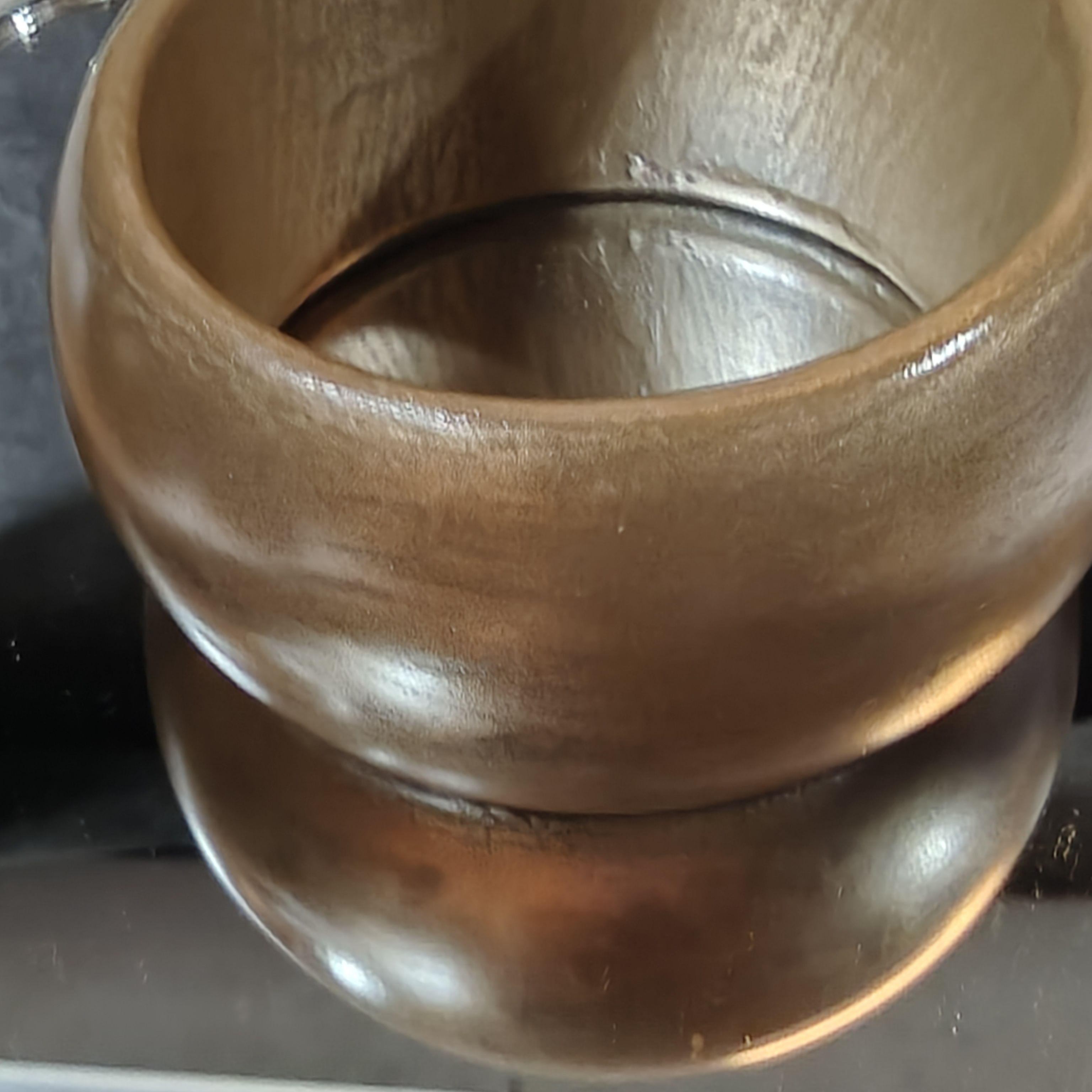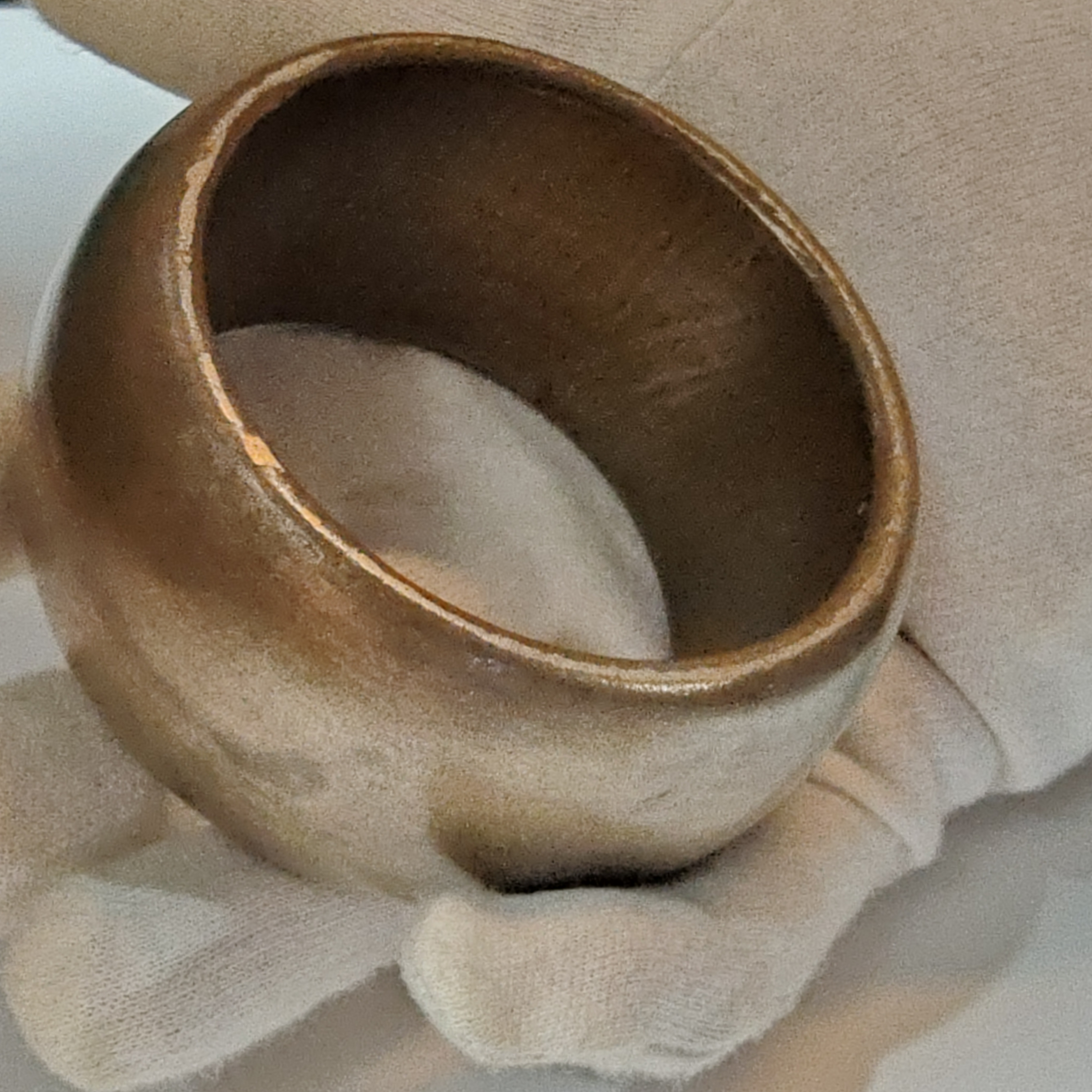 Radome nenaudojamas, senas medines apyrankes ir, pasitelkę specialią technologiją, padengėme (metalizavome) jas ryškiu bronzos sluoksniu. Tai suteikia joms modernų, industrinį atspalvį, išlaikant lengvą ir patogų medžio pagrindą. Tai aksesuaras, kuris neabejotinai trauks dėmesį ir taps puošmena jūsų kolekcijoje.