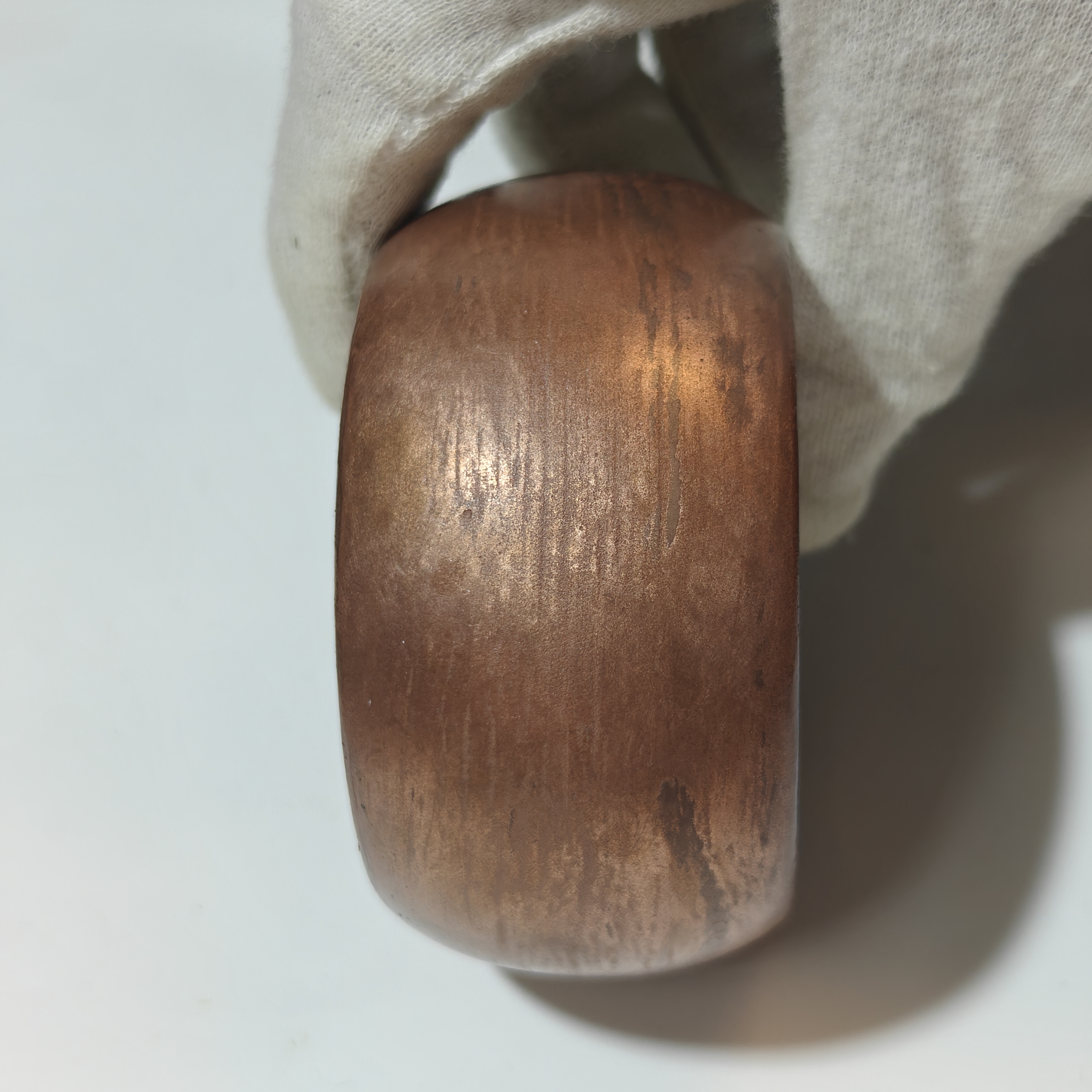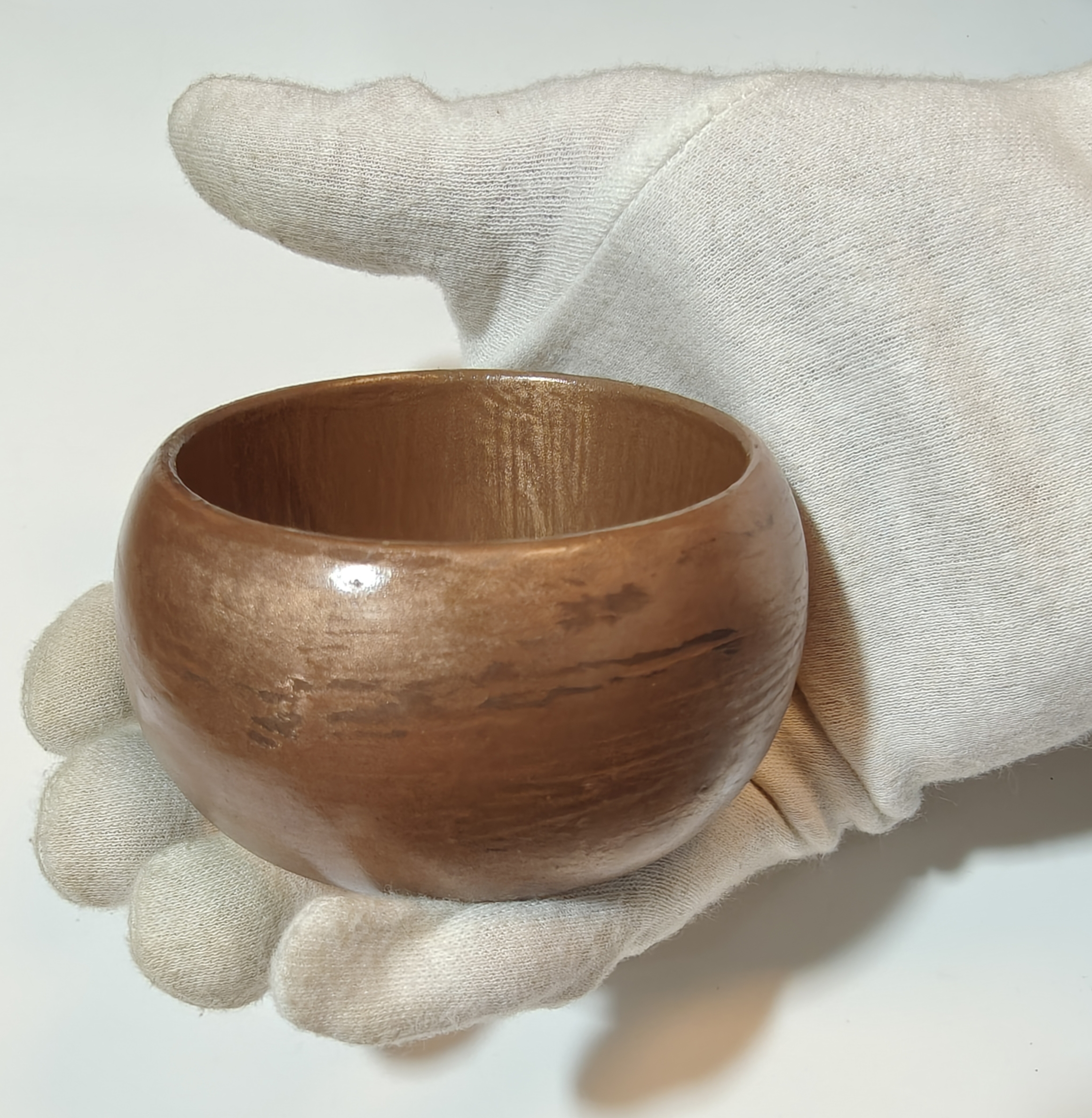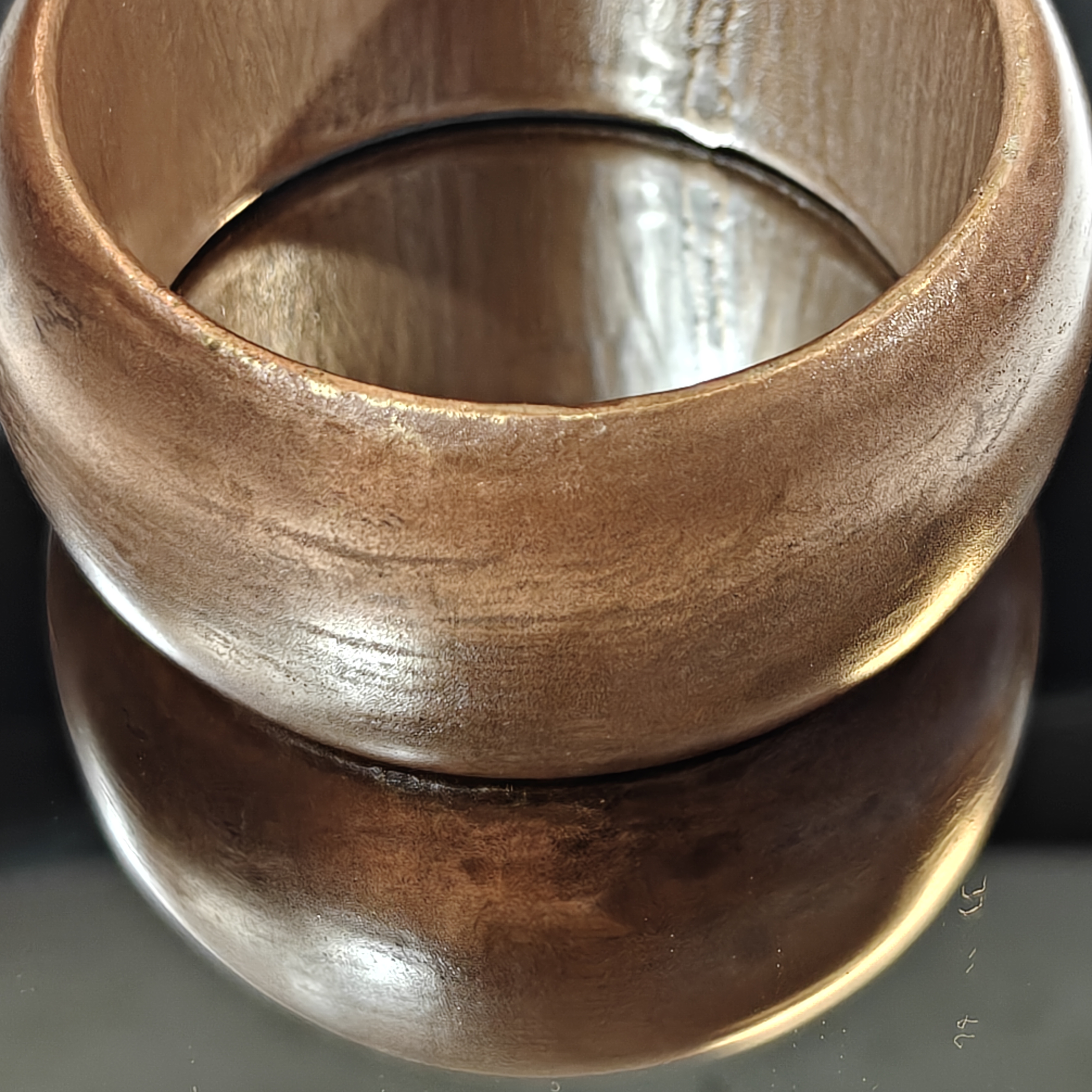 Tai yra medinė apyrankė padengta variu, kitaip tariant metalizuota. Tai yra tikro metalo apyrankė. Beje ši vintažinio stiliaus apyrankė puikiai dera "Steampunk" stiliaus gebėjams.